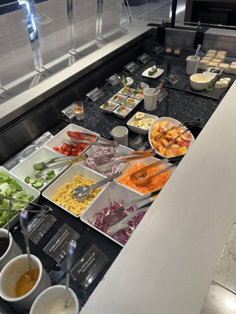 ビュッフェはいろいろあったけど、特に野菜が本当に美味しかった!サラダの野菜がシャキシャキで新鮮で、ドレッシングも重すぎなくて食べやすい。軽めに食べたつもりなのに、ちゃんと満足感があってさすがだな〜って思いました。