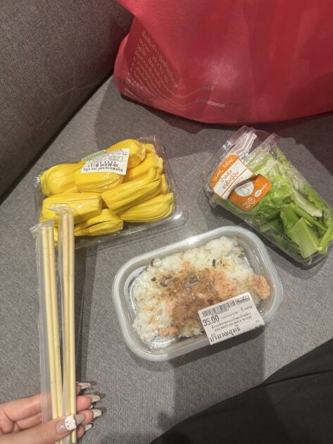 ジャックフルーツと、さっぱり食べられそうなサラダ、あとシャケ弁当を購入!!ローカル感と日本っぽさが混ざってるのが面白かった〜!