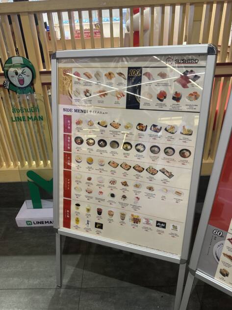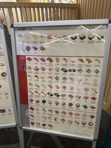 タイを歩いていたら、まさかのスシローを発見してびっくりしました!!日本でもおなじみのお店なので、海外でこのロゴを見るとちょっと安心感があります🍣値段を見てみると、日本のだいたい倍くらいで正直お高め。でもその分、ネタはどれも美味しそうで、写真付きのメニューを眺めているだけでもワクワクしました✨