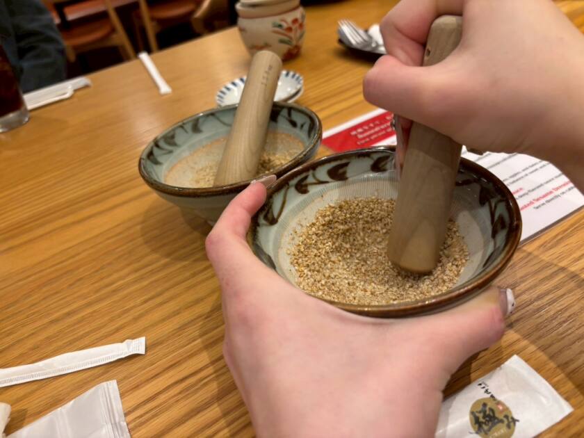 席に着くと、すり鉢とゴマが運ばれてきて、自分でするスタイルなのが楽しくて、つい夢中になってしまいました😘ゴマをする作業が好きなので、自分の分だけでなく、人の分まで率先してやってしまいました💗すりたてのゴマの香りが広がって、食べる前から気分が上がります✨