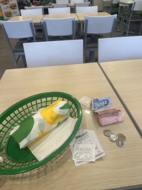 朝起きて、ちょっとお腹がすいたのでサブウェイに行きました!海外のサブウェイに入るのは少しドキドキして、「ちゃんと注文できるかな…」って思いながら並びました💭パンの種類とか、具材とか、聞かれることが多くて、正直ちょっと難しかったです💭