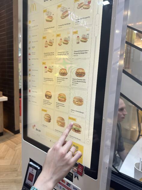 外観は見慣れたマークなのに、中に入るとちょっと雰囲気がちがっていて、それだけで楽しくなりました🙋🏻♀️ここはキャッシュレスだけで注文するスタイルで、機械をタッチしながら選ぶのが新鮮でした✨