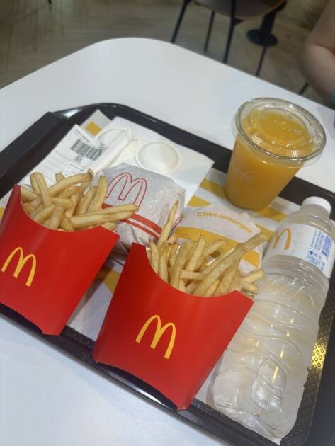 私はチーズバーガーとポテトとオレンジジュースを注文しました🙈もうこれは安定の組み合わせで、食べた瞬間「これこれ!」ってなりました✨ポテトもカリカリで、オレンジジュースもさっぱりしていて美味しかったです✨一緒に行った子は「日本のマックと少し味がちがうかも?」って言っていて、言われてみるとそんな気もしました笑笑