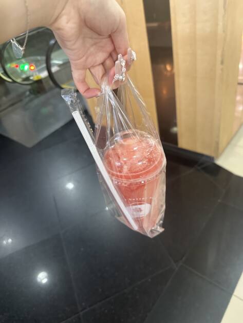 余計な甘さがなく、自然な果実の味がぎゅっと詰まっていて本当に感動しました!!暑いタイの空気の中で飲む冷たいスイカジュースは格別!!