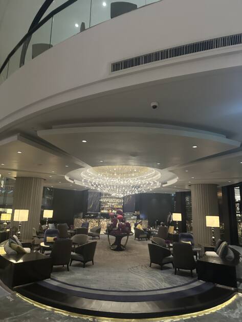 写真を見ただけでもわかる、天井からきらめくシャンデリアと広々とした空間がとても上品で、大人の余裕を感じさせる雰囲気でした🥂賑やかなバンコクの街中にありながら、ここだけ時間がゆっくり流れているような静けさがあって、思わず深呼吸したくなります😎