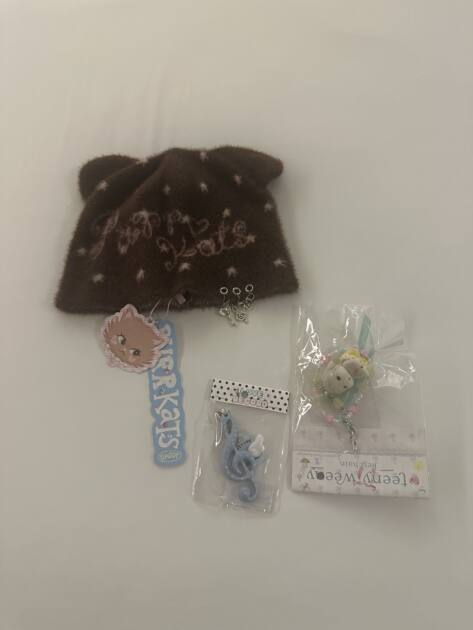 キーホルダーはお土産で友達に買って、ニット帽は日本に帰って早く被りたいです🥺